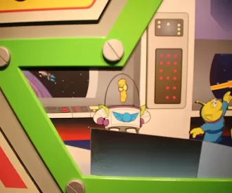 VIEW HIDDEN MICKEYThere is a Hidden Stitch Spaceship in this pic taken in the Buzz Lightyear's Space Ranger Spin Store as you exit the...