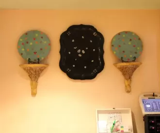 VIEW HIDDEN MICKEYThere is a reference to Disney Characters in this wall design made out of crayons in the Cape May Buffet at Disney's Beach Club Resort.