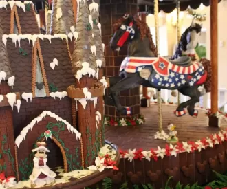 VIEW HIDDEN MICKEYThere are several Hidden Mickeys in this Gingerbread Carousel located in the lobby of Disney's Beach Club Resort. How many can you find?