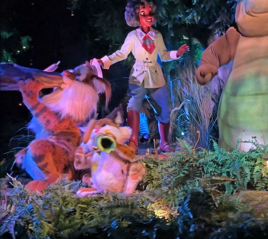 Keep your eyes peeled as you drift through the midway point of Tiana’s Bayou Adventure! While you’re watching the bobcat keep the beat on his tree-trunk saxophone, look closely at the spots on his fur. You’ll find two Hidden Mickeys cleverly tucked away—one on his elbow and another just behind his paw.