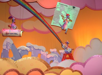 There is a Hidden Mickey in this pic taken inside of the Imagination ride in Epcot. This is seen midway through the ride so you have to look quick....