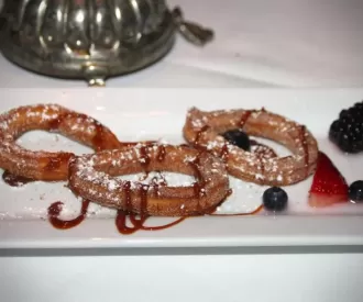 VIEW HIDDEN MICKEYThe Chocolate Caliente Y Churro dessert at San Angel Inn, located int the Mexican Pavillian at Epcot, included churros shaped as Mickey Ears.