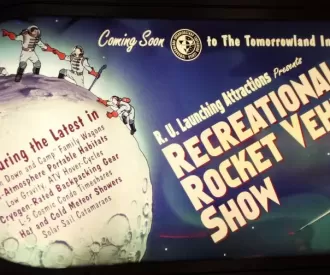 There is a Hidden Mickey in this pic taken outside of Monsters, Inc. Laugh Floor in Tomorrowland at The Magic Kingdom.