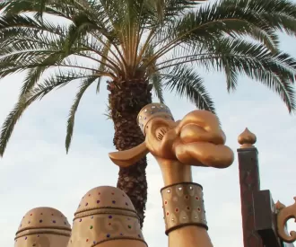 VIEW HIDDEN MICKEYThere is a Hidden Mickey located around the camel necklace in The Magic Carpets of Aladdin ride in The Magic Kingdom.