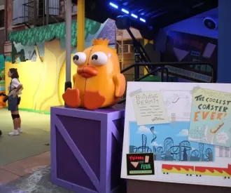 VIEW HIDDEN MICKEYThere is a Hidden Mickey in this pic taken of a Phineas and Ferb photo area by the Stage 1 Company Store near the...
